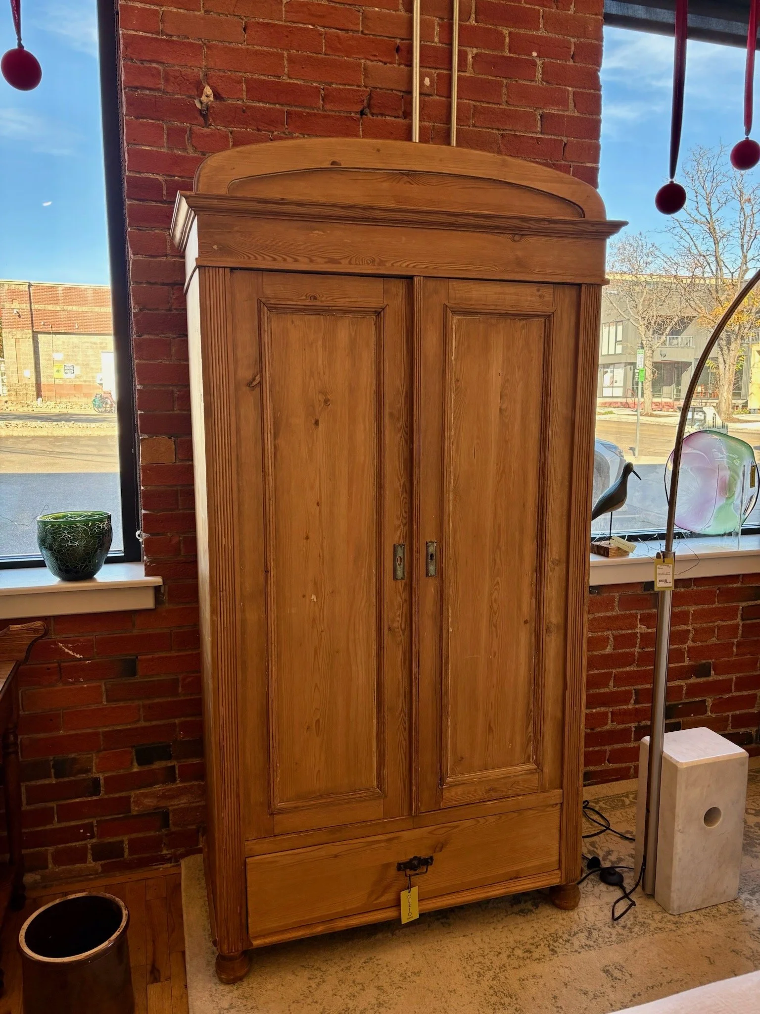 Pine Armoire with a drawer and 2 interior shelves and bar to hang clothes